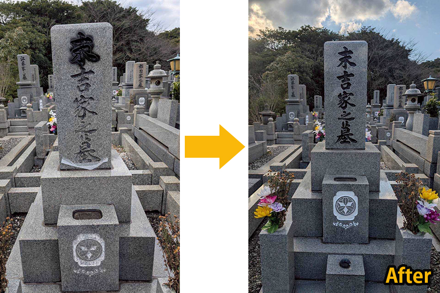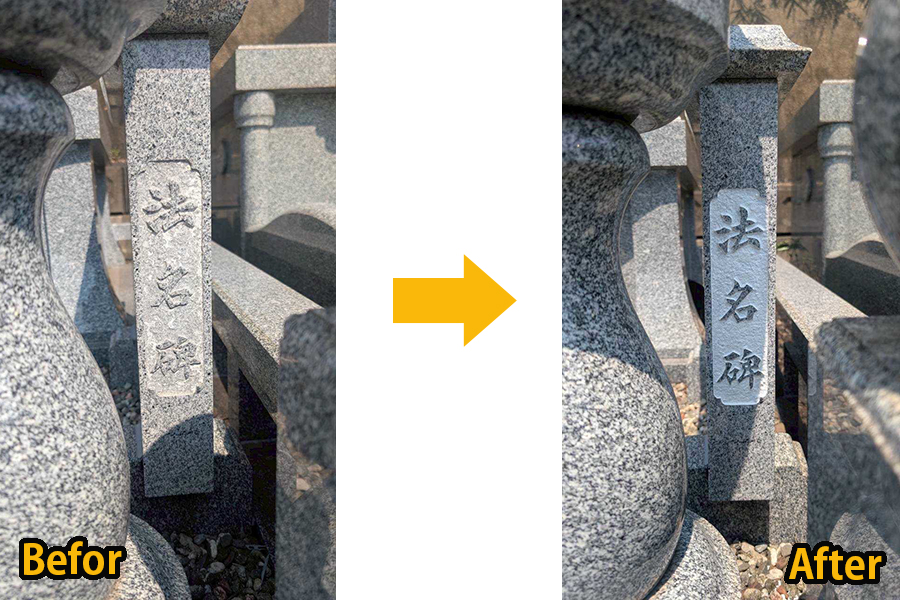 例えば、「○○家」の文字を貼らずに、「慈」「憩」「愛」などの一文字を大きく彫刻することもございますし、「ありがとう」などの文字を彫ることもございます。