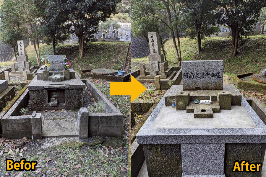 新しく墓を建立される場合は工事費は含まれますが旧墓石の改修工事、移動などは見積もりいたします。